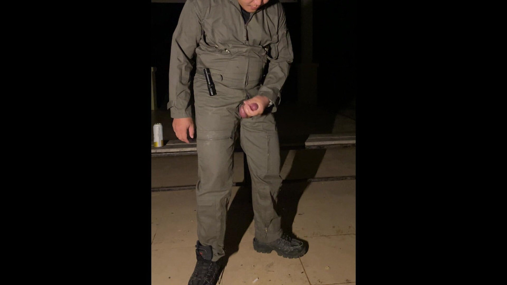 After work is done decide to jerk off in my mechanic jumpsuit and shoot a creamy load - wet with precum lube