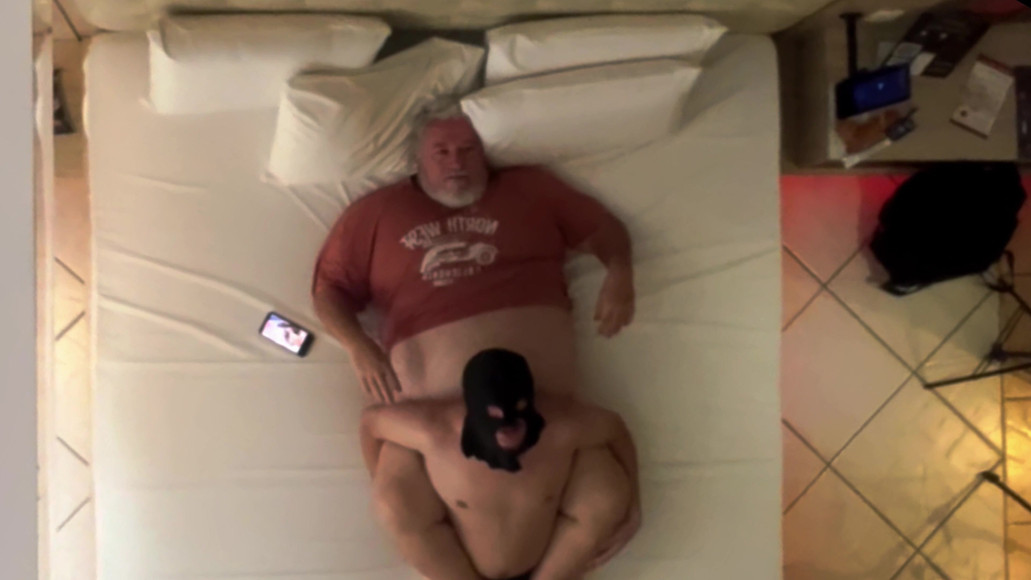 O papai urso esta na cama, usando seu filho como empregado para satisfazer o seus desejos.