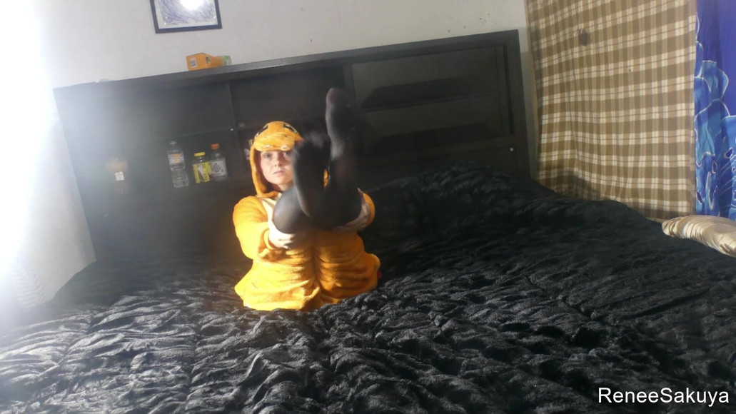 Renee Sakuya in a charizard suit dancing and stripping, silent film, sound was edited out due to music