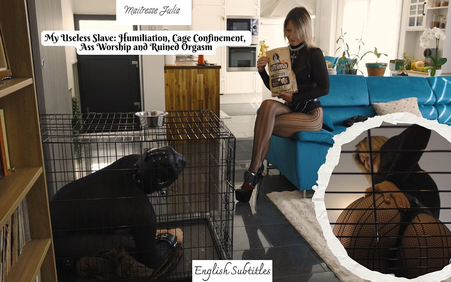 My slave is no longer useful... Before, he helped me shoot and edit videos, but I found a professional editor... I swore to keep him in my household, but now that he's become useless, he will stay locked in a cage until he’s useful again... He will only come out once a week to miserably empty his balls. He will eat only leftovers or the cheapest food