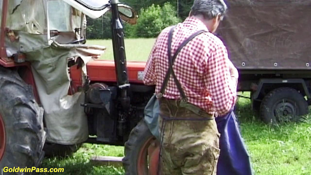 Horny german lederhosen grandpa loves to fuck his big boob blonde stepdaughter in nature