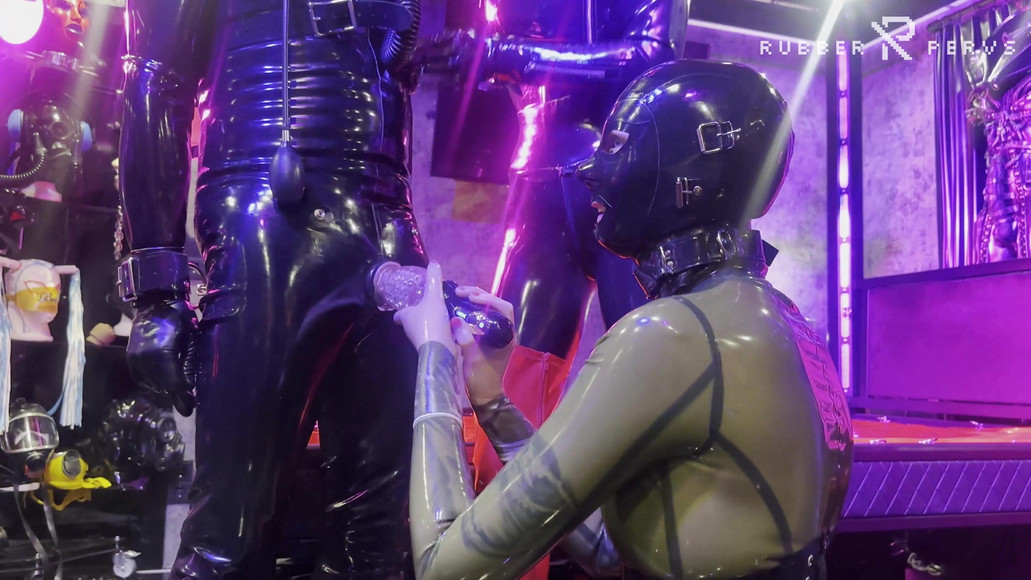 Ava Fetishart and Rubber, dressed in beautiful full rubber outs fits, dominate Pervs and Johnny Mountain using a latex Vaccuum Tower and a gas mask!