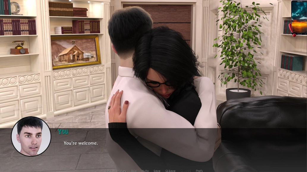John and Lisa share a quiet lunch that slowly turns into a heart-to-heart. Old feelings resurface as they talk about what still connects them. reunion, john, lisa, lunch scene, drama, romantic tension, emotional story, character development, visual novel, 3d story