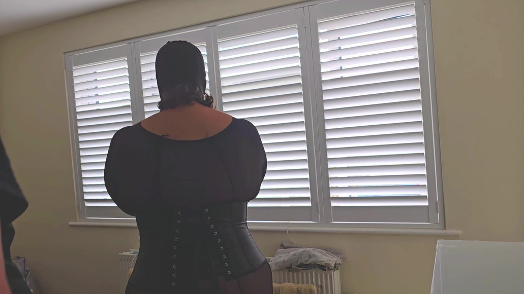 In the sultry haze of anticipation, Ms. B yields completely, sliding into a shimmering sheer bodysuit that hugs her every curve like liquid temptation, paired with a vice-like black corset that squeezes her breath into ragged gasps of surrender. She submits utterly to Sir, her body his to command, pulse racing as he fastens the cuffs around her wrists and ankles. "Show me," he demands, his voice a low rumble of hunger, compelling her to pose for him—limbs extended, form twisting in vulnerable allure—so he can feast his eyes on just how devastatingly sexy she is, bound and bared under his scrutiny. hooded in darkness that heightens every touch, she is commanded to suck Sir's cock, her lips parting eagerly as he guides his cock deep into her mouth, filling her with his unyielding heat, her submission deepening with each controlled thrust .At last, he claims he, driving into her slick, tight pussy with raw dominance pounding until he floods her depths with a thick, creamy release